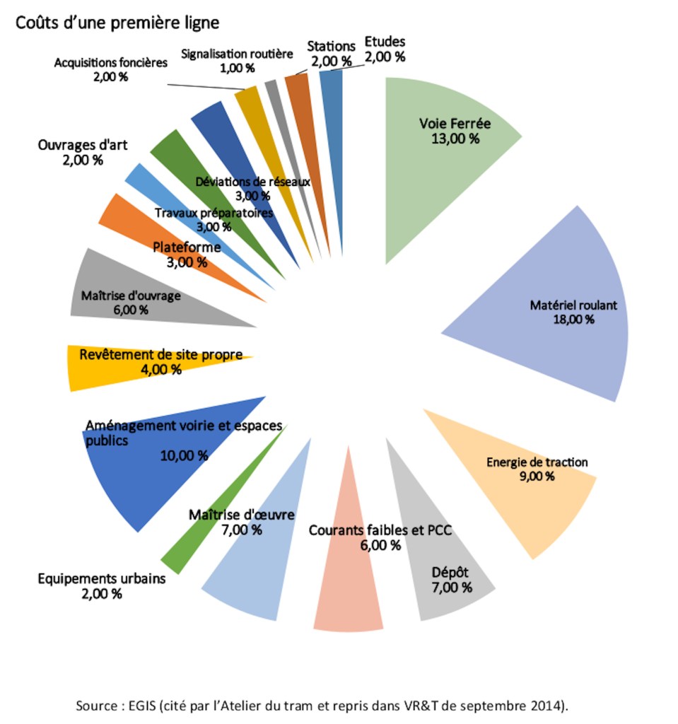 Voyons la décomposition par poste de dépense (annexe au compte-rendu): le matériel roulant ne représente que 18 % du total (15 % à Besançon). Les pistes de réduction ne devront donc pas porter sur le seul matériel roulant mais la remise à plat devra porter aussi sur les autres postes (voie, énergie, …)