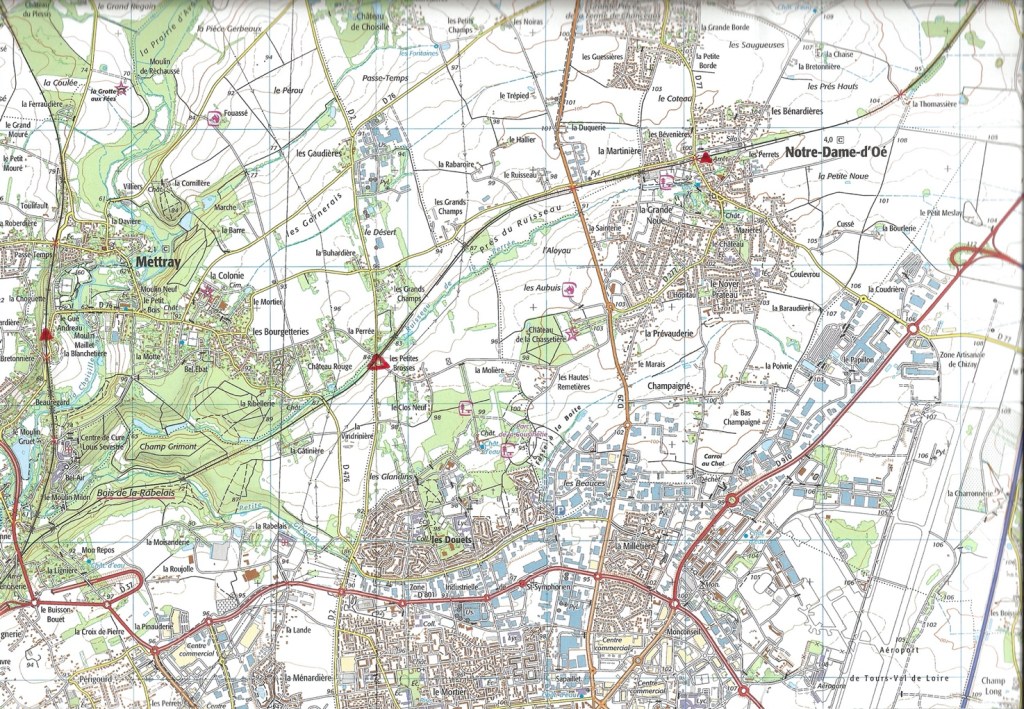 La carte signale des gares qui pourraient être ré-ouvertes, voire créées permettant aux habitants de la périphérie tourangelle de laisser leur voiture dans un parking-relais et de gagner en quelques minutes le Centre-Ville. À La Douzillère, gare existante, un court prolongement du tram A vers la station permettrait d’avoir des correspondances aisées et rapides entre tram et TER.Il n’y aurait pas pour le moment dans ce cas une interpénétration entre le réseau urbain et les voies SNCF (système du tram-train), ceci afin de préserver la rénovation et la valorisation de la ligne Tours-Loches (voir plus loin).