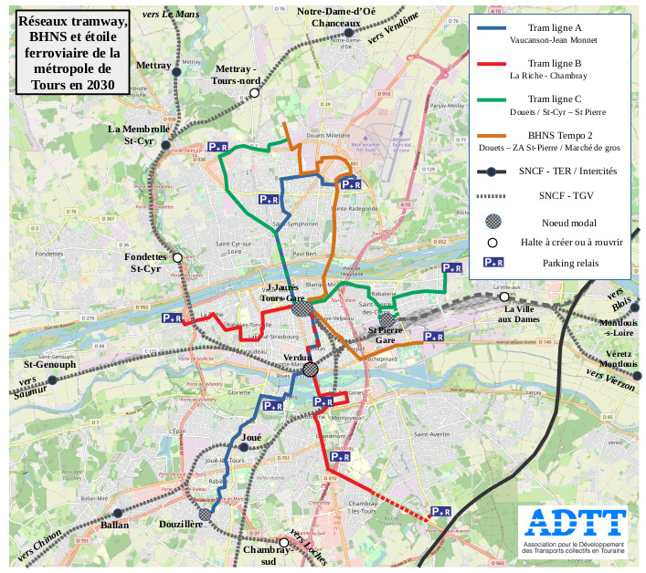 - de garder l’objectif d’un réseau minimum de trois lignes, incluant les communes de Saint-Pierre-des-Corps (indispensable et urgente) et Saint-Cyr-sur-Loire dans un avenir proche.