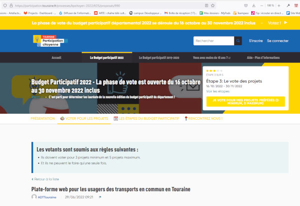 Il faut s’inscrire, et voter pour 3 projets différents au moins, sachant que notre projet étant dans la catégories « toutes les commues », nous serons en concurrence avec les autres projets de cette catégorie uniquement.