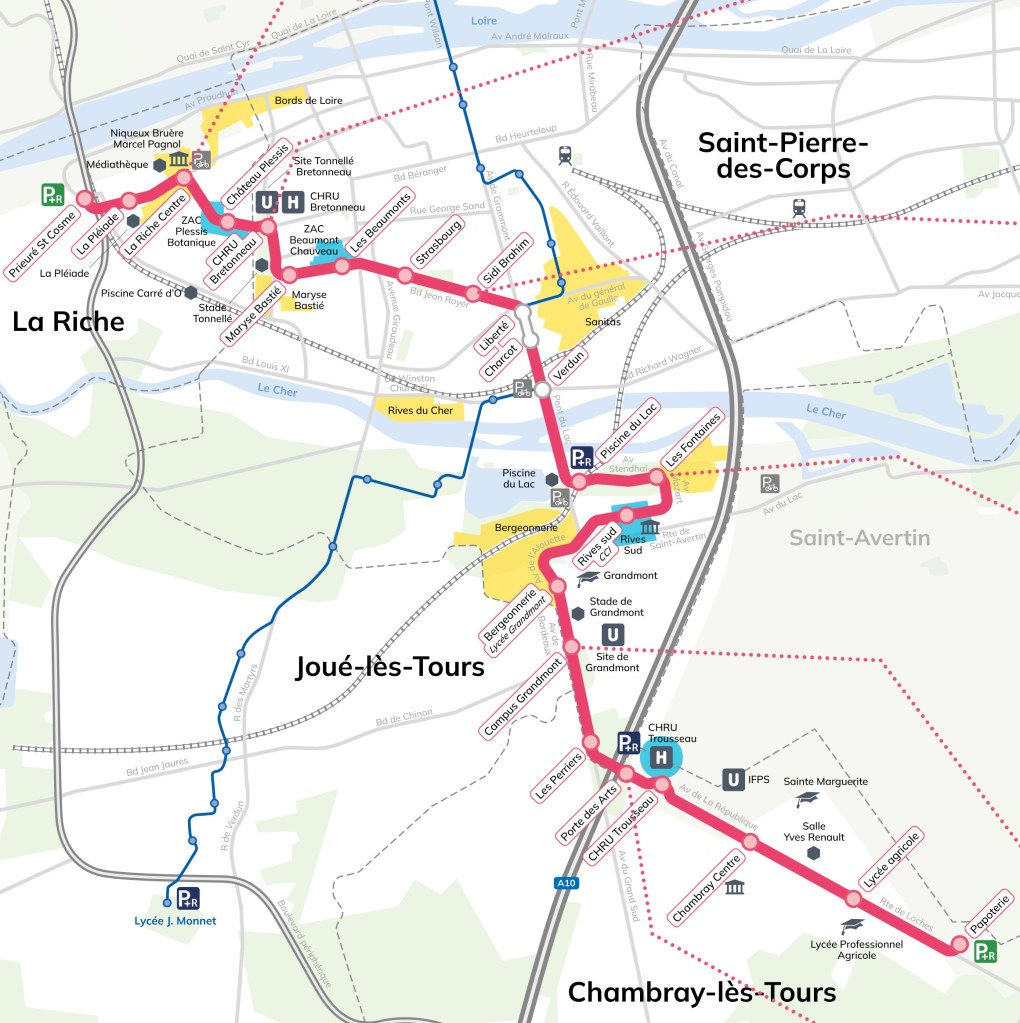 De même, dans l’hypothèse d’un futur embranchement vers le sud de Chambray -Chambray 2 -immense zone d’activités commerciales dont le projet est d’y insérer des zones d’habitations-, il serait tout aussi pertinent de prévoir un aiguillage à l’intersection dite « Porte des Arts ».